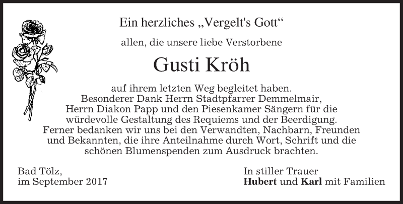 Hier finden Sie alle Traueranzeigen aus der Zeitung, die bisher für Gusti Kröh erschienen sind. Weitere Traueranzeigen, die in der Zeitung erscheinen, werden hier ebenfalls aufgelistet