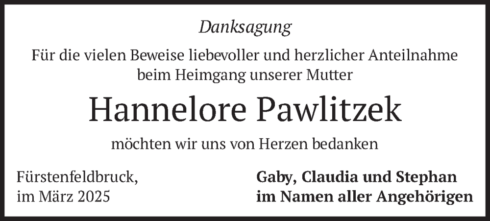 Hier finden Sie alle Traueranzeigen aus der Zeitung, die bisher für Hannelore Pawlitzek erschienen sind. Weitere Traueranzeigen, die in der Zeitung erscheinen, werden hier ebenfalls aufgelistet