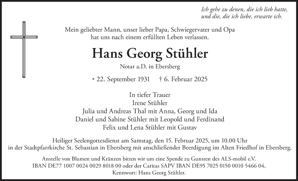 Hier finden Sie alle Traueranzeigen aus der Zeitung, die bisher für Hans Georg Stühler erschienen sind. Weitere Traueranzeigen, die in der Zeitung erscheinen, werden hier ebenfalls aufgelistet
