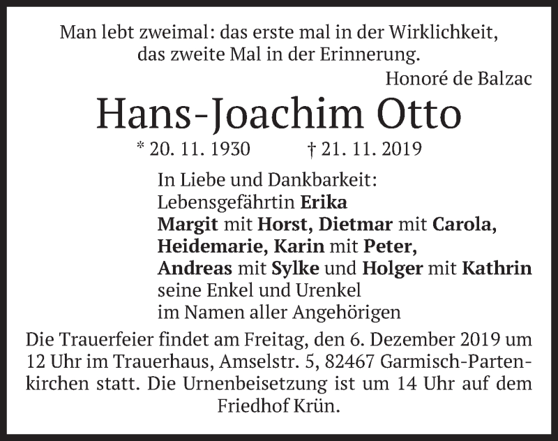 Hier finden Sie alle Traueranzeigen aus der Zeitung, die bisher für Hans-Joachim Otto erschienen sind. Weitere Traueranzeigen, die in der Zeitung erscheinen, werden hier ebenfalls aufgelistet
