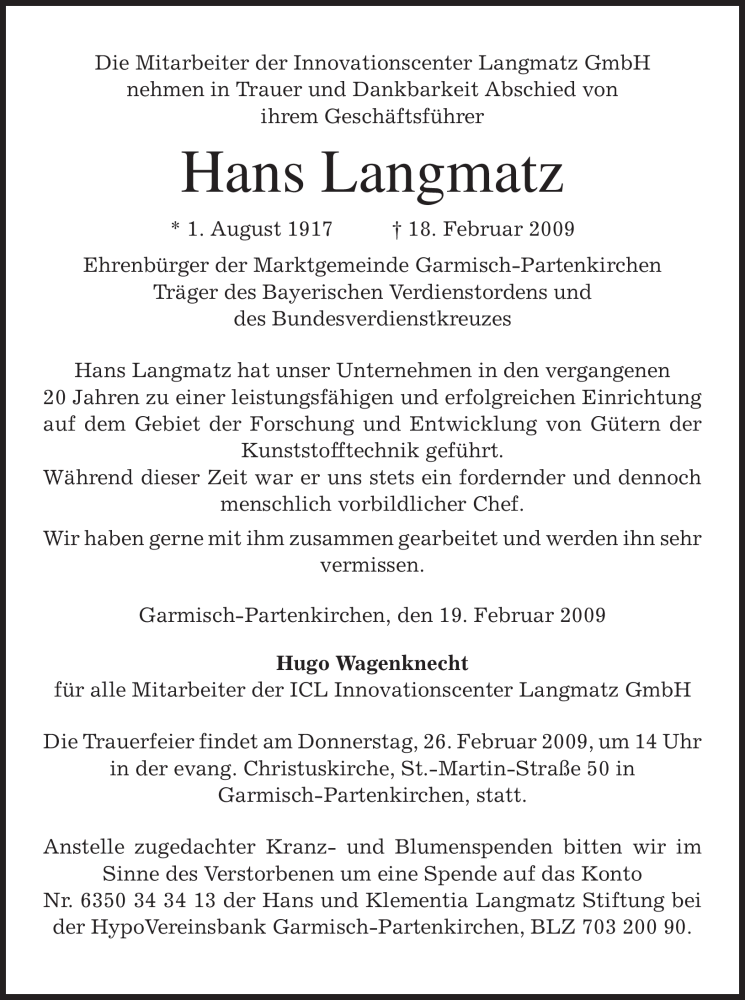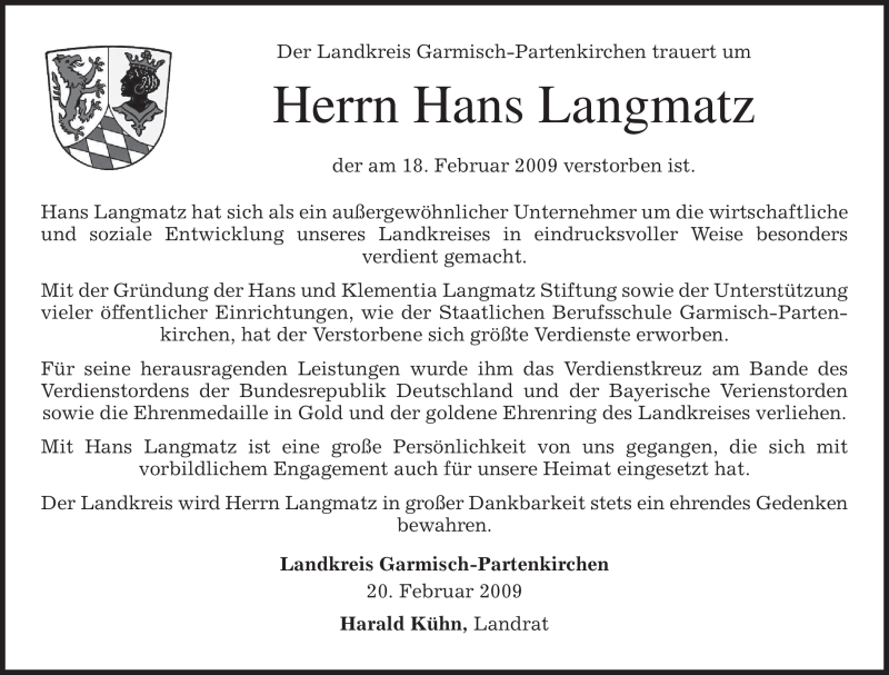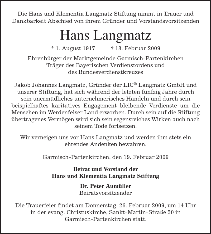 Hier finden Sie alle Traueranzeigen aus der Zeitung, die bisher für Hans Langmatz erschienen sind. Weitere Traueranzeigen, die in der Zeitung erscheinen, werden hier ebenfalls aufgelistet