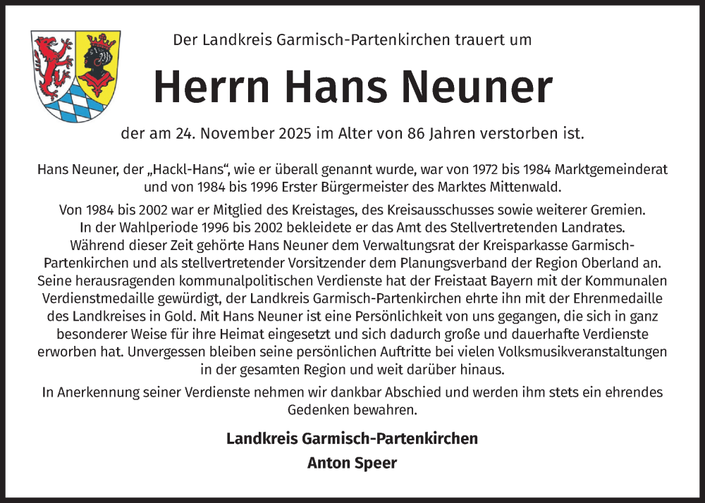 Hier finden Sie alle Traueranzeigen aus der Zeitung, die bisher für Hans Neuner erschienen sind. Weitere Traueranzeigen, die in der Zeitung erscheinen, werden hier ebenfalls aufgelistet