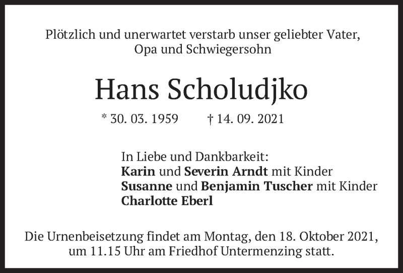 Hier finden Sie alle Traueranzeigen aus der Zeitung, die bisher für Hans Scholudjko erschienen sind. Weitere Traueranzeigen, die in der Zeitung erscheinen, werden hier ebenfalls aufgelistet