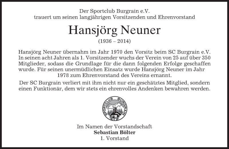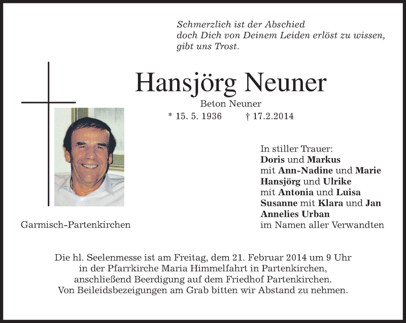 Hier finden Sie alle Traueranzeigen aus der Zeitung, die bisher für Hansjörg Neuner erschienen sind. Weitere Traueranzeigen, die in der Zeitung erscheinen, werden hier ebenfalls aufgelistet