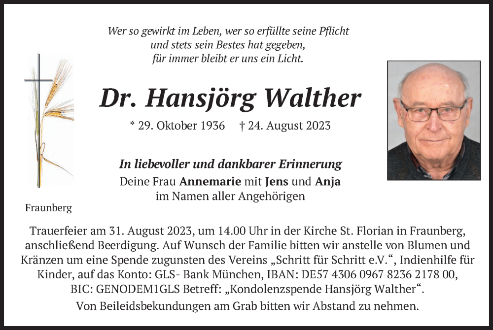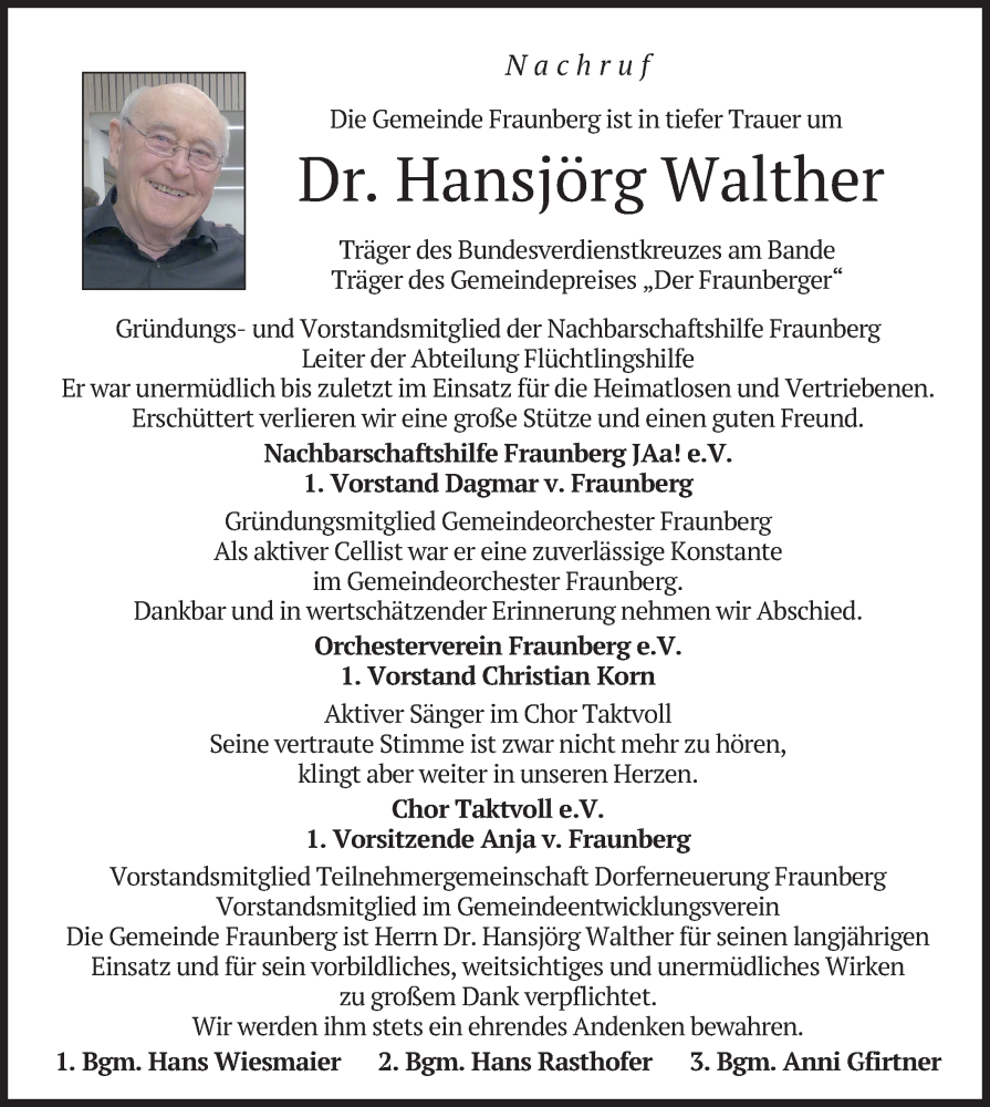 Hier finden Sie alle Traueranzeigen aus der Zeitung, die bisher für Hansjörg Walther erschienen sind. Weitere Traueranzeigen, die in der Zeitung erscheinen, werden hier ebenfalls aufgelistet