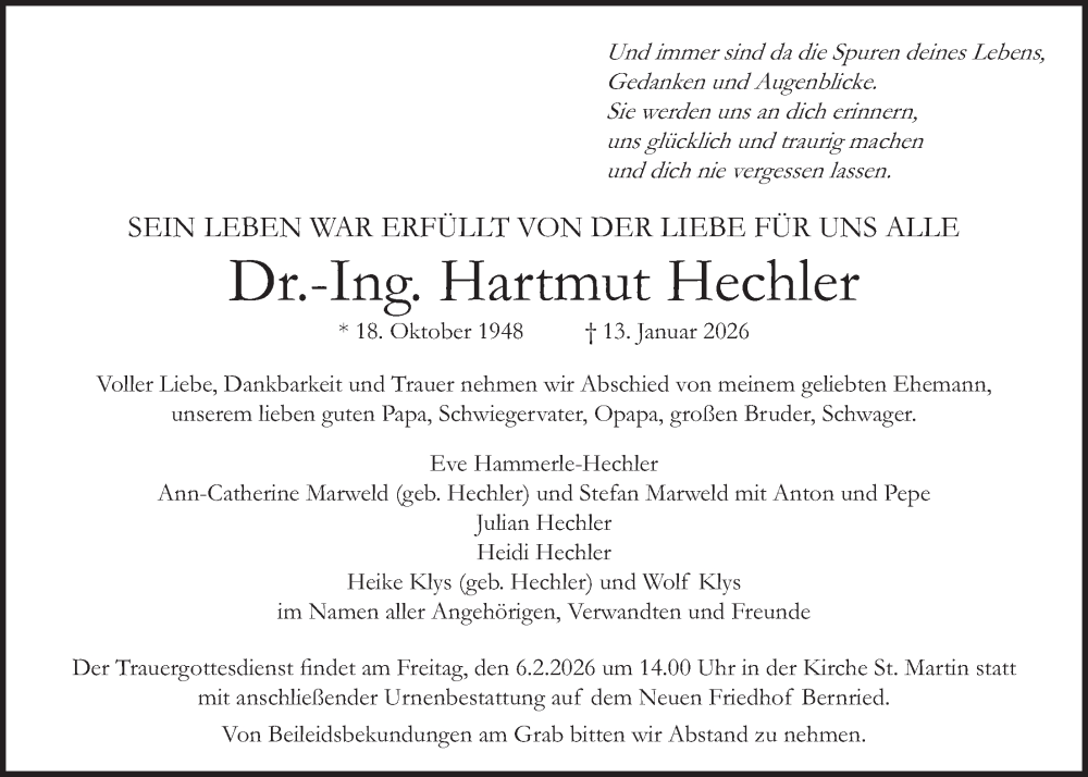 Hier finden Sie alle Traueranzeigen aus der Zeitung, die bisher für Hartmut Hechler erschienen sind. Weitere Traueranzeigen, die in der Zeitung erscheinen, werden hier ebenfalls aufgelistet