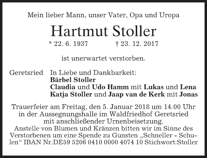 Hier finden Sie alle Traueranzeigen aus der Zeitung, die bisher für Hartmut Stoller erschienen sind. Weitere Traueranzeigen, die in der Zeitung erscheinen, werden hier ebenfalls aufgelistet