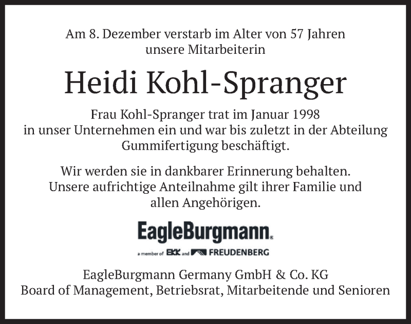 Hier finden Sie alle Traueranzeigen aus der Zeitung, die bisher für Heidi Kohl-Spranger erschienen sind. Weitere Traueranzeigen, die in der Zeitung erscheinen, werden hier ebenfalls aufgelistet