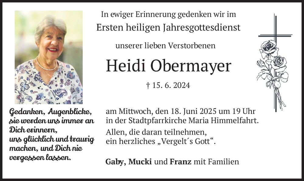 Hier finden Sie alle Traueranzeigen aus der Zeitung, die bisher für Heidi Obermayer erschienen sind. Weitere Traueranzeigen, die in der Zeitung erscheinen, werden hier ebenfalls aufgelistet