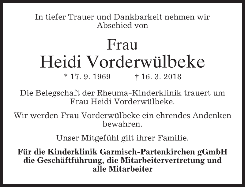 Hier finden Sie alle Traueranzeigen aus der Zeitung, die bisher für Heidi Vorderwülbeke erschienen sind. Weitere Traueranzeigen, die in der Zeitung erscheinen, werden hier ebenfalls aufgelistet