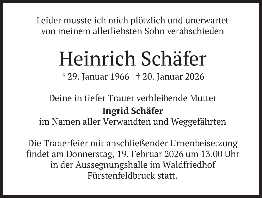 Hier finden Sie alle Traueranzeigen aus der Zeitung, die bisher für Heinrich Schäfer erschienen sind. Weitere Traueranzeigen, die in der Zeitung erscheinen, werden hier ebenfalls aufgelistet