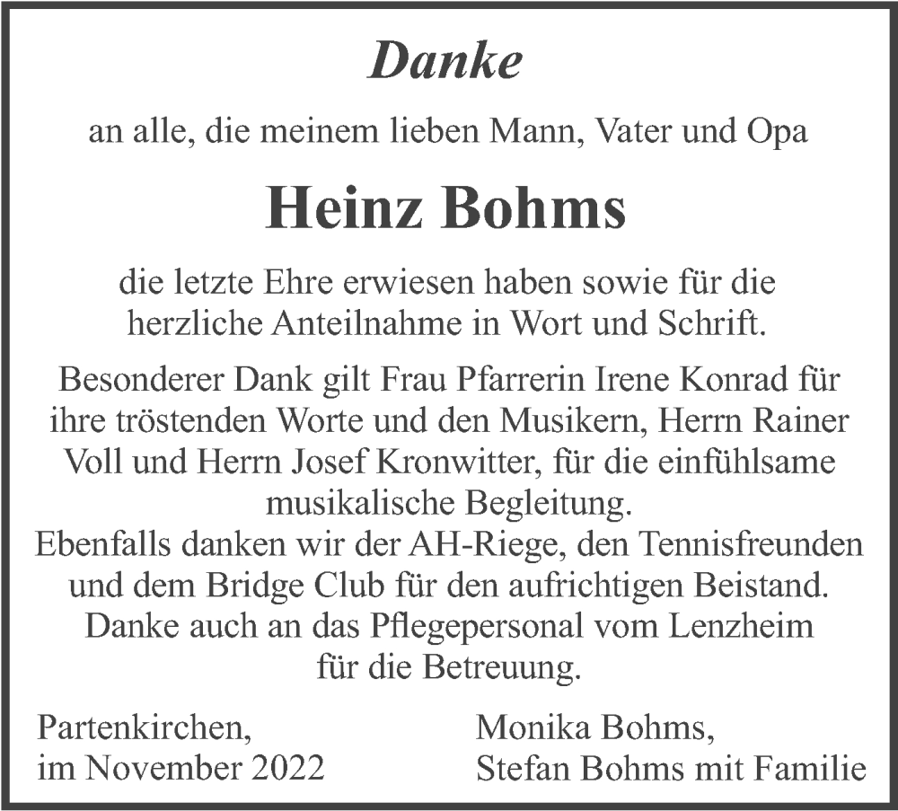 Hier finden Sie alle Traueranzeigen aus der Zeitung, die bisher für Heinz Bohms erschienen sind. Weitere Traueranzeigen, die in der Zeitung erscheinen, werden hier ebenfalls aufgelistet