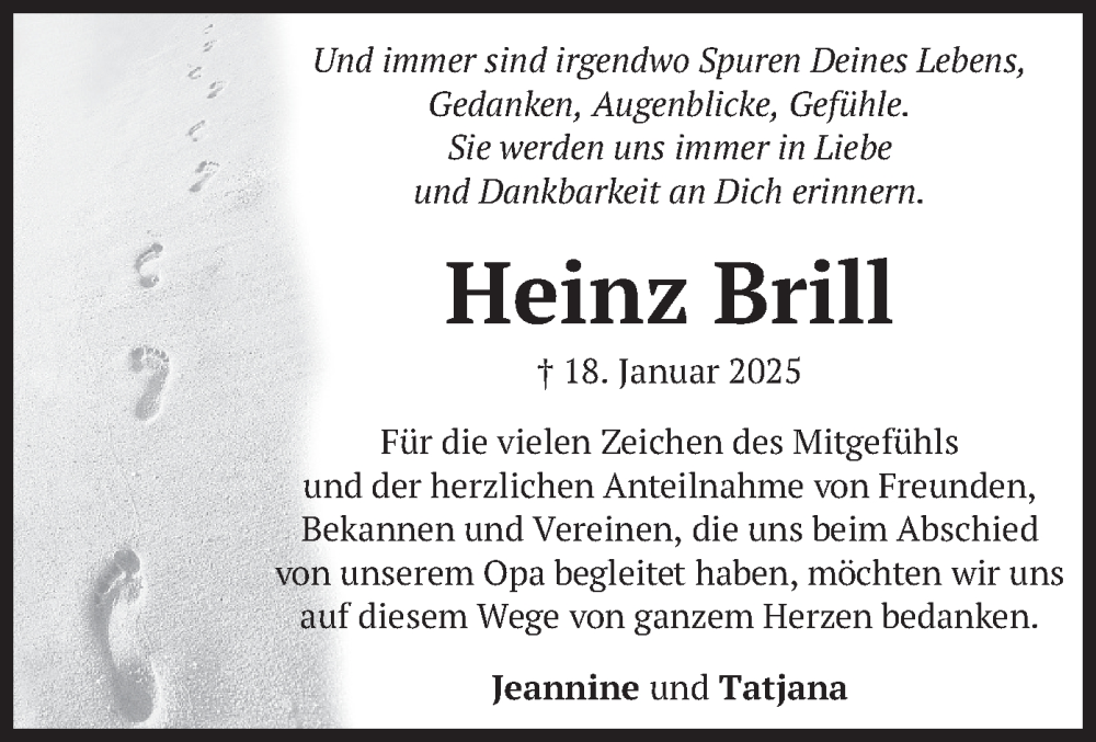 Hier finden Sie alle Traueranzeigen aus der Zeitung, die bisher für Heinz Brill erschienen sind. Weitere Traueranzeigen, die in der Zeitung erscheinen, werden hier ebenfalls aufgelistet