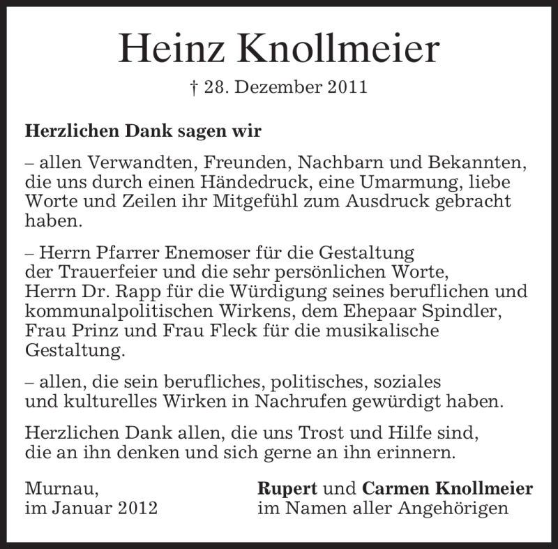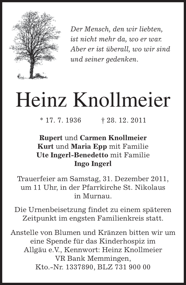 Hier finden Sie alle Traueranzeigen aus der Zeitung, die bisher für Heinz Knollmeier erschienen sind. Weitere Traueranzeigen, die in der Zeitung erscheinen, werden hier ebenfalls aufgelistet