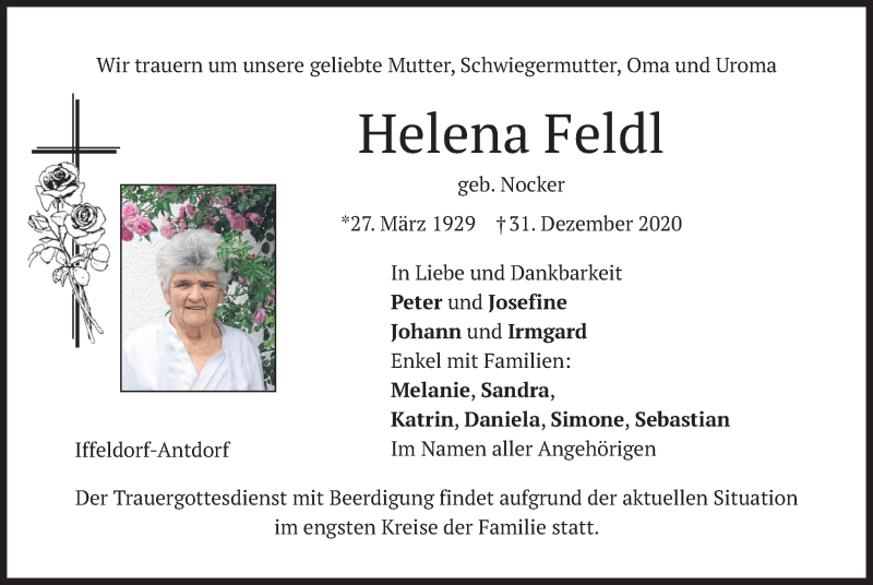 Hier finden Sie alle Traueranzeigen aus der Zeitung, die bisher für Helena Feldl erschienen sind. Weitere Traueranzeigen, die in der Zeitung erscheinen, werden hier ebenfalls aufgelistet