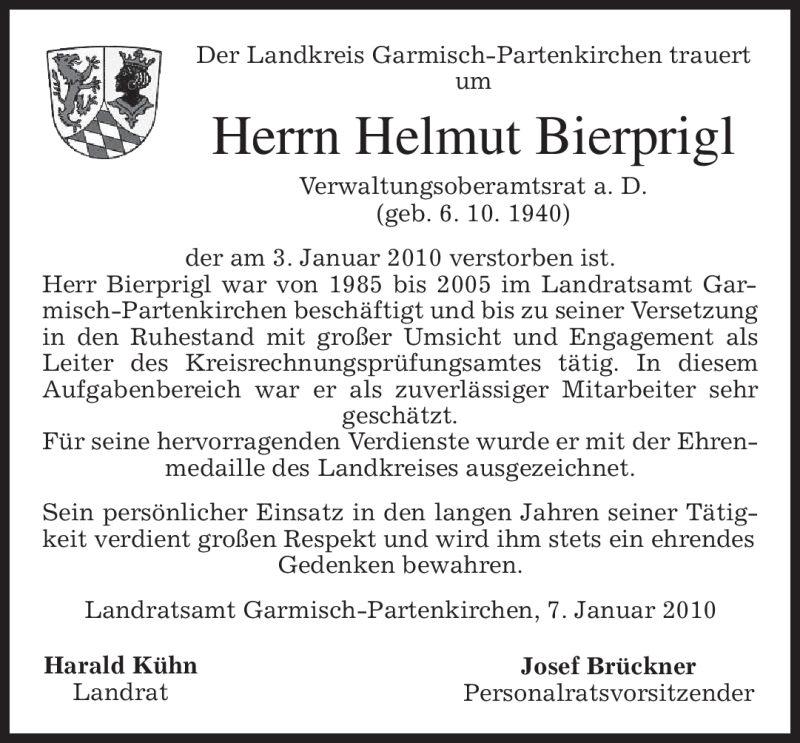 Hier finden Sie alle Traueranzeigen aus der Zeitung, die bisher für Helmut Bierprigl erschienen sind. Weitere Traueranzeigen, die in der Zeitung erscheinen, werden hier ebenfalls aufgelistet