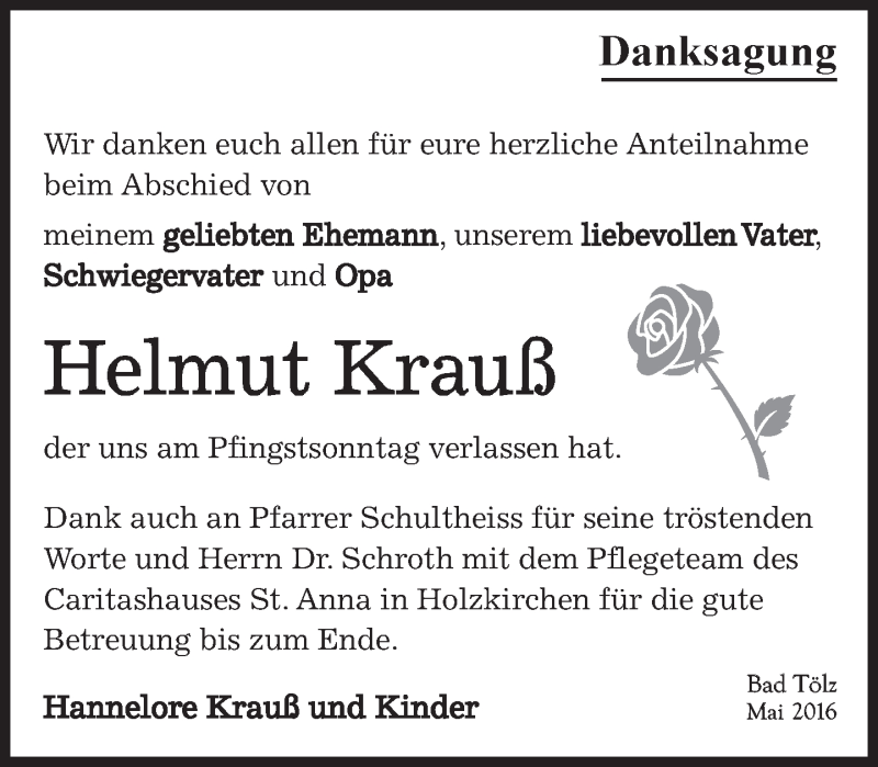 Hier finden Sie alle Traueranzeigen aus der Zeitung, die bisher für Helmut Krauß erschienen sind. Weitere Traueranzeigen, die in der Zeitung erscheinen, werden hier ebenfalls aufgelistet
