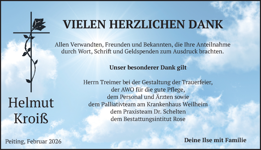 Hier finden Sie alle Traueranzeigen aus der Zeitung, die bisher für Helmut Kroiß erschienen sind. Weitere Traueranzeigen, die in der Zeitung erscheinen, werden hier ebenfalls aufgelistet