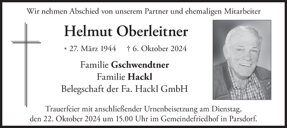 Hier finden Sie alle Traueranzeigen aus der Zeitung, die bisher für Helmut Oberleitner erschienen sind. Weitere Traueranzeigen, die in der Zeitung erscheinen, werden hier ebenfalls aufgelistet