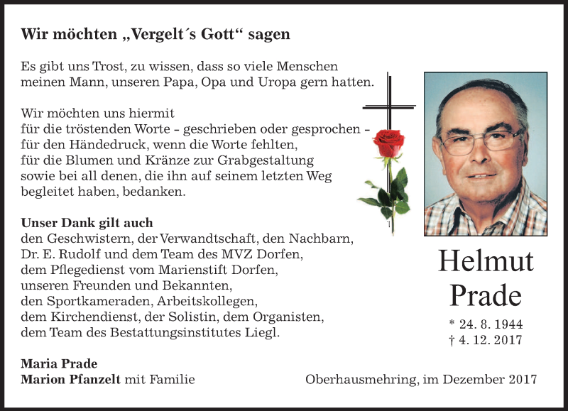 Hier finden Sie alle Traueranzeigen aus der Zeitung, die bisher für Helmut Prade erschienen sind. Weitere Traueranzeigen, die in der Zeitung erscheinen, werden hier ebenfalls aufgelistet