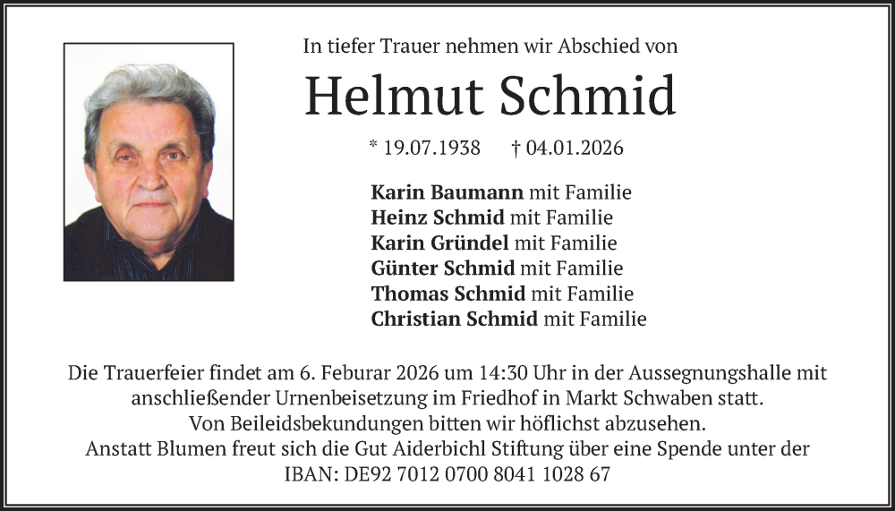 Hier finden Sie alle Traueranzeigen aus der Zeitung, die bisher für Helmut Schmid erschienen sind. Weitere Traueranzeigen, die in der Zeitung erscheinen, werden hier ebenfalls aufgelistet