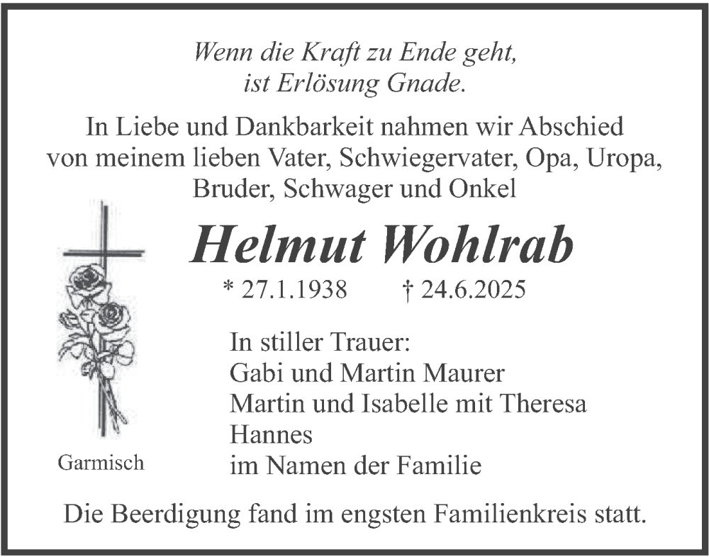 Hier finden Sie alle Traueranzeigen aus der Zeitung, die bisher für Helmut Wohlrab erschienen sind. Weitere Traueranzeigen, die in der Zeitung erscheinen, werden hier ebenfalls aufgelistet