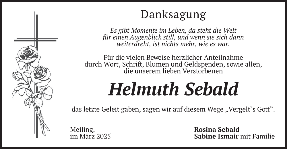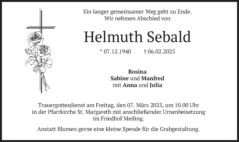 Hier finden Sie alle Traueranzeigen aus der Zeitung, die bisher für Helmuth Sebald erschienen sind. Weitere Traueranzeigen, die in der Zeitung erscheinen, werden hier ebenfalls aufgelistet