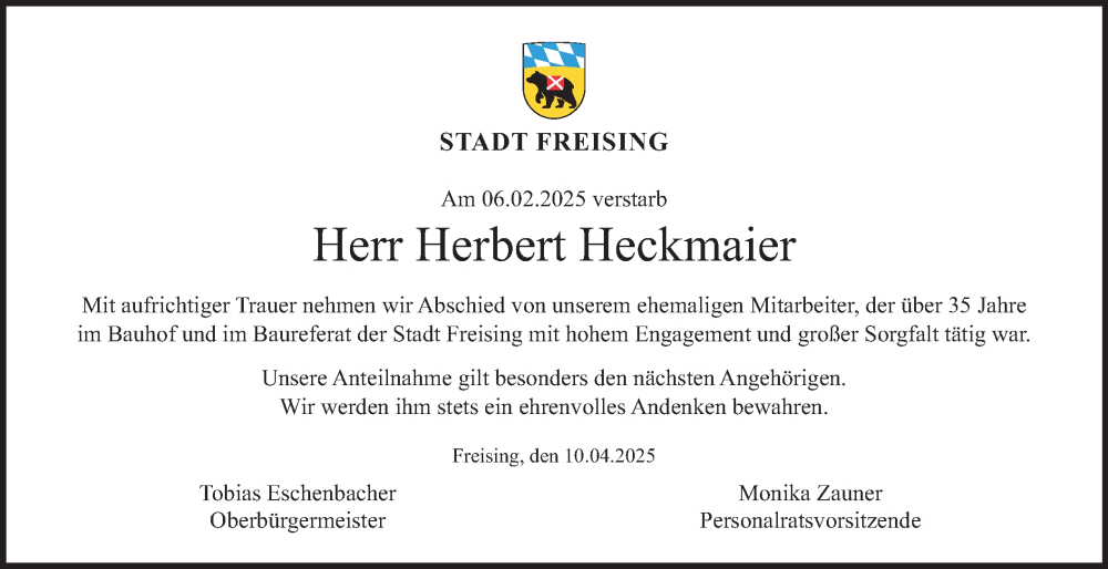 Hier finden Sie alle Traueranzeigen aus der Zeitung, die bisher für Herbert Heckmaier erschienen sind. Weitere Traueranzeigen, die in der Zeitung erscheinen, werden hier ebenfalls aufgelistet