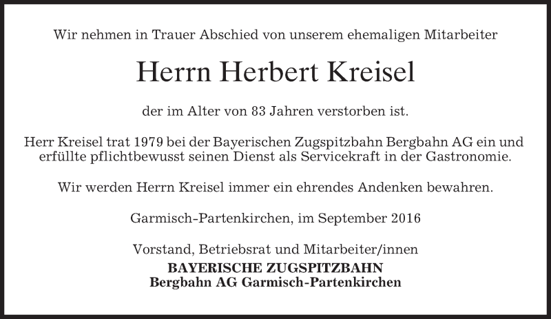 Hier finden Sie alle Traueranzeigen aus der Zeitung, die bisher für Herbert Kreisel erschienen sind. Weitere Traueranzeigen, die in der Zeitung erscheinen, werden hier ebenfalls aufgelistet