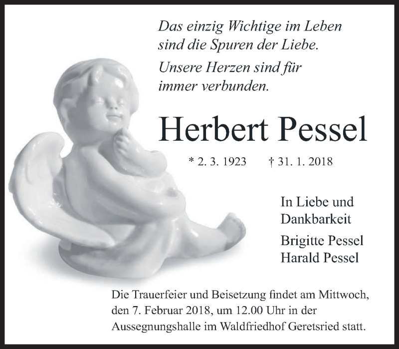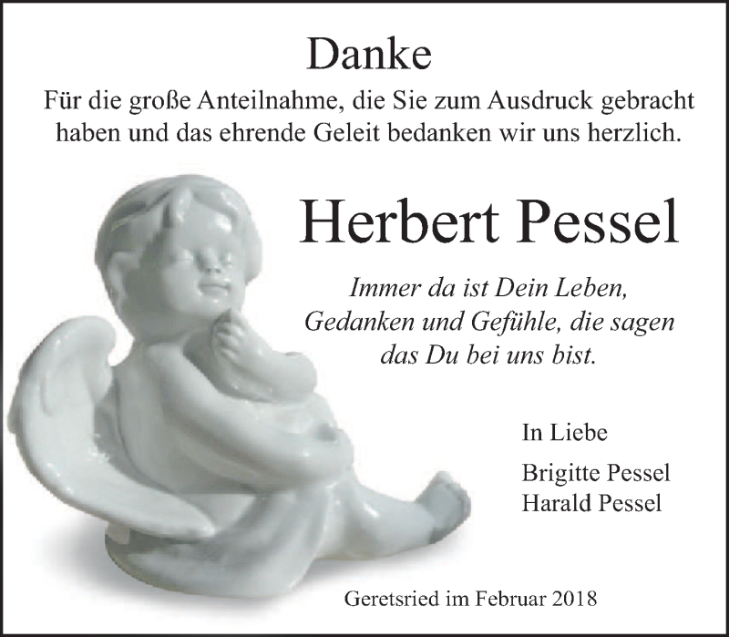 Hier finden Sie alle Traueranzeigen aus der Zeitung, die bisher für Herbert Pessel erschienen sind. Weitere Traueranzeigen, die in der Zeitung erscheinen, werden hier ebenfalls aufgelistet