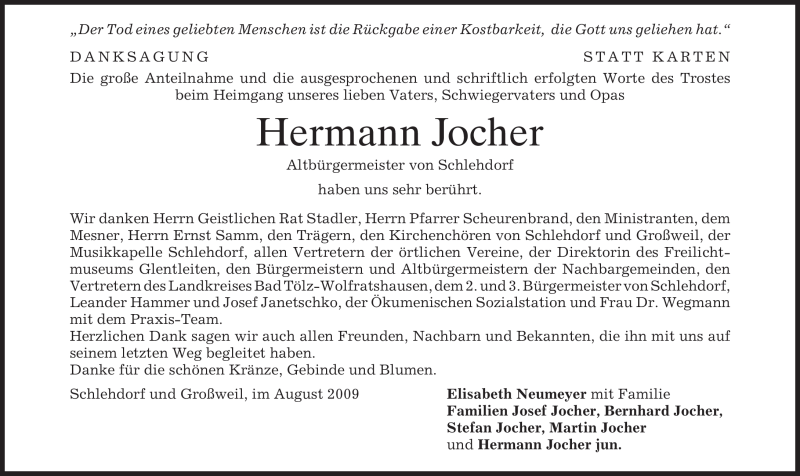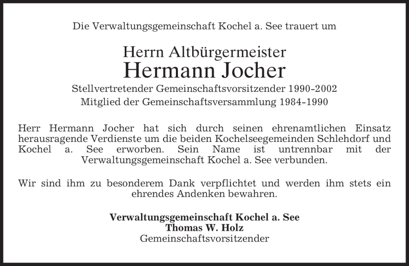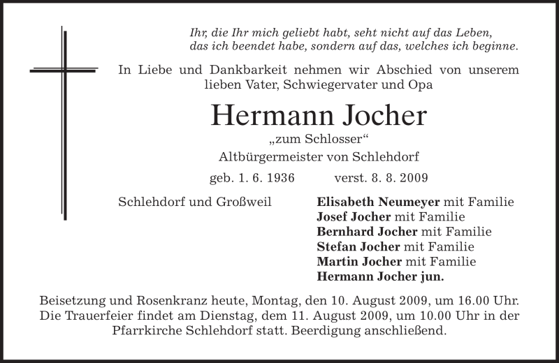 Hier finden Sie alle Traueranzeigen aus der Zeitung, die bisher für Hermann Jocher erschienen sind. Weitere Traueranzeigen, die in der Zeitung erscheinen, werden hier ebenfalls aufgelistet