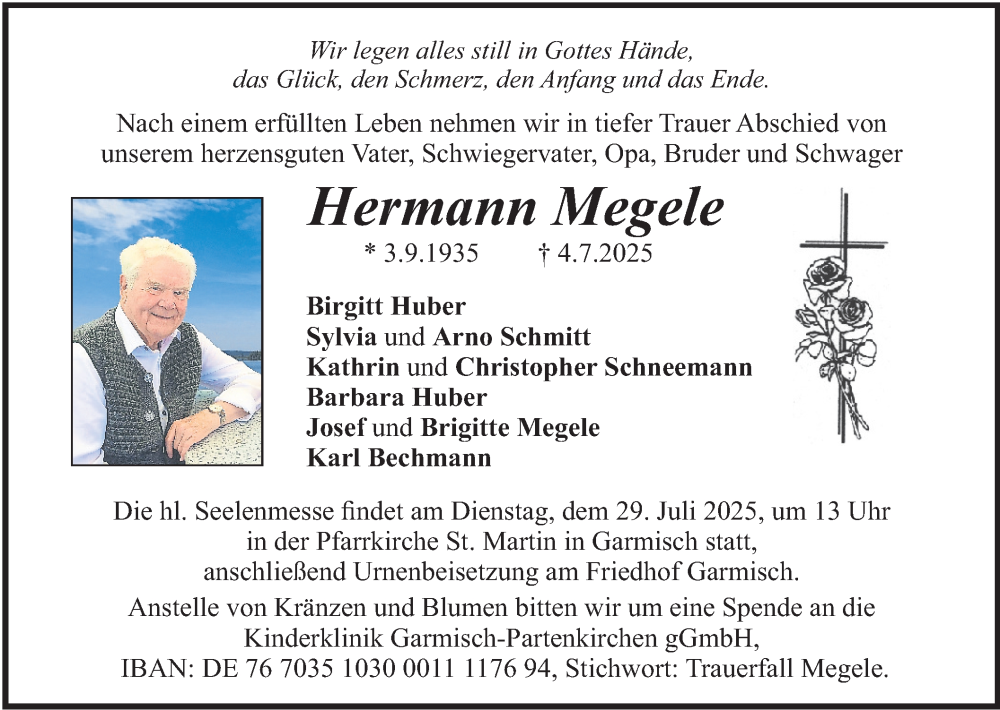 Hier finden Sie alle Traueranzeigen aus der Zeitung, die bisher für Hermann Megele erschienen sind. Weitere Traueranzeigen, die in der Zeitung erscheinen, werden hier ebenfalls aufgelistet