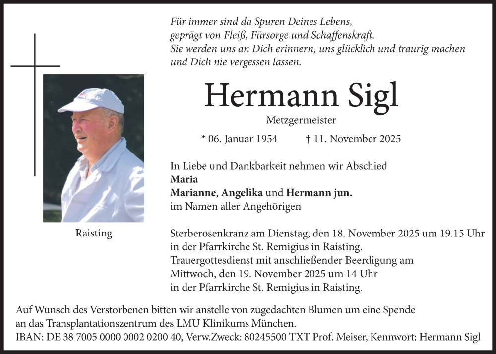 Hier finden Sie alle Traueranzeigen aus der Zeitung, die bisher für Hermann Sigl erschienen sind. Weitere Traueranzeigen, die in der Zeitung erscheinen, werden hier ebenfalls aufgelistet