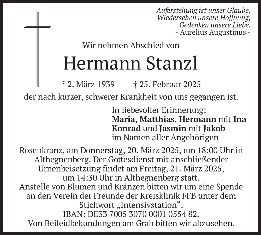 Hier finden Sie alle Traueranzeigen aus der Zeitung, die bisher für Hermann Stanzl erschienen sind. Weitere Traueranzeigen, die in der Zeitung erscheinen, werden hier ebenfalls aufgelistet