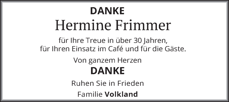 Hier finden Sie alle Traueranzeigen aus der Zeitung, die bisher für Hermine Frimmer erschienen sind. Weitere Traueranzeigen, die in der Zeitung erscheinen, werden hier ebenfalls aufgelistet