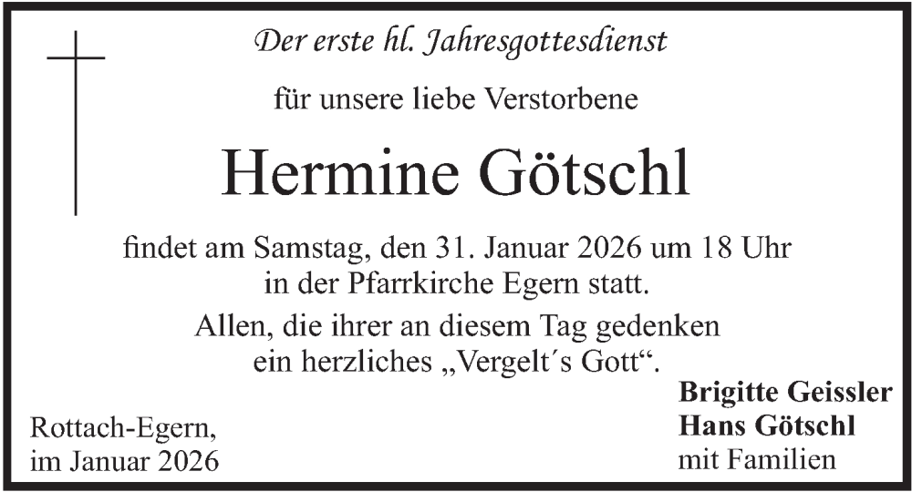 Hier finden Sie alle Traueranzeigen aus der Zeitung, die bisher für Hermine Götschl erschienen sind. Weitere Traueranzeigen, die in der Zeitung erscheinen, werden hier ebenfalls aufgelistet