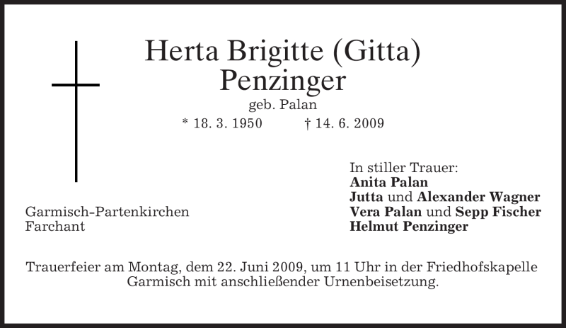 Hier finden Sie alle Traueranzeigen aus der Zeitung, die bisher für Herta Brigitte Penzinger erschienen sind. Weitere Traueranzeigen, die in der Zeitung erscheinen, werden hier ebenfalls aufgelistet