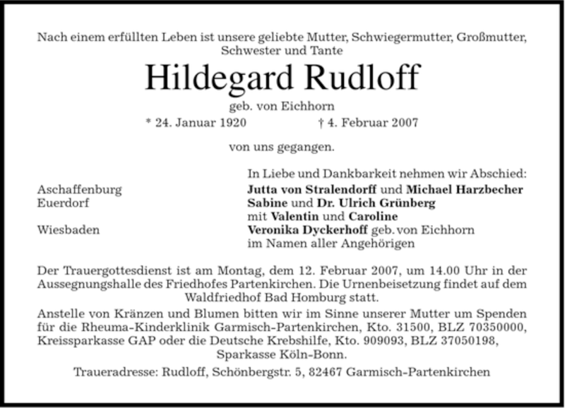 Hier finden Sie alle Traueranzeigen aus der Zeitung, die bisher für Hildegard Rudloff erschienen sind. Weitere Traueranzeigen, die in der Zeitung erscheinen, werden hier ebenfalls aufgelistet