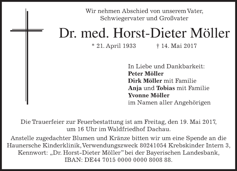 Hier finden Sie alle Traueranzeigen aus der Zeitung, die bisher für Horst-Dieter Möller erschienen sind. Weitere Traueranzeigen, die in der Zeitung erscheinen, werden hier ebenfalls aufgelistet
