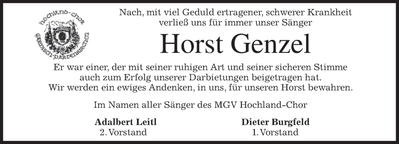 Hier finden Sie alle Traueranzeigen aus der Zeitung, die bisher für Horst Genzel erschienen sind. Weitere Traueranzeigen, die in der Zeitung erscheinen, werden hier ebenfalls aufgelistet