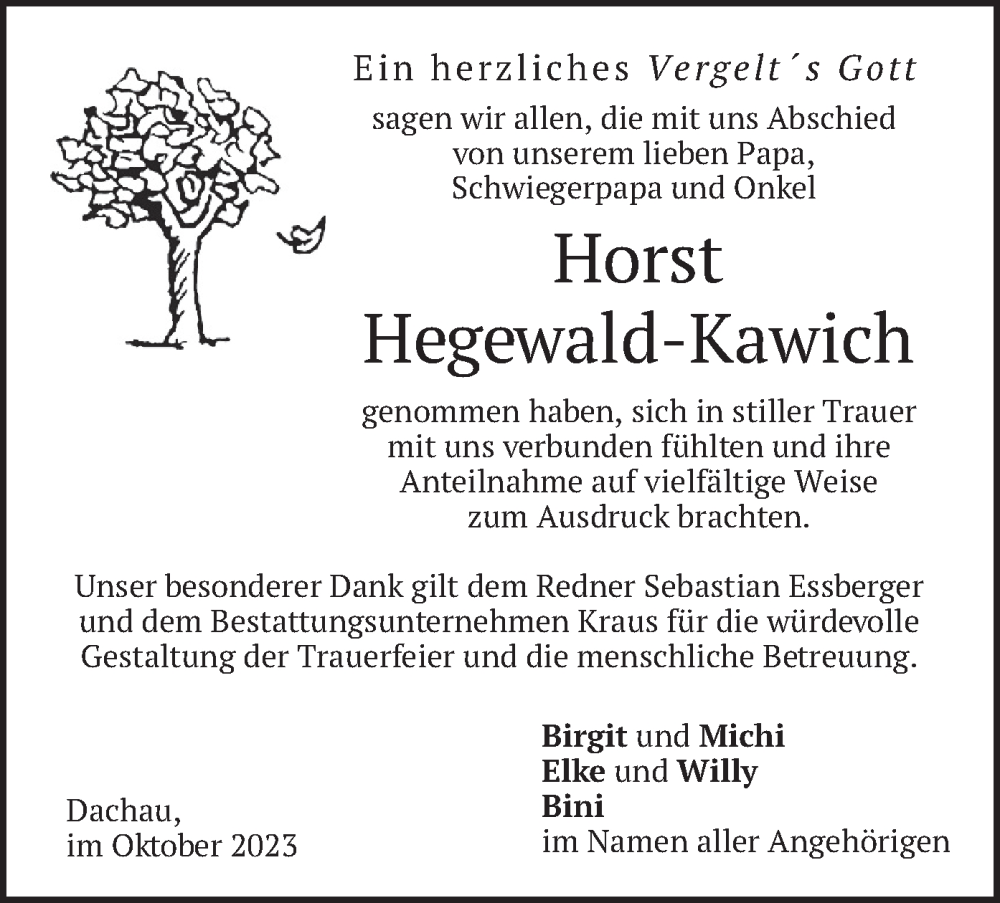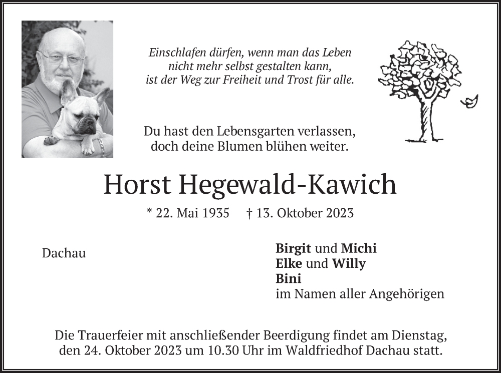 Hier finden Sie alle Traueranzeigen aus der Zeitung, die bisher für Horst Hegewald-Kawich erschienen sind. Weitere Traueranzeigen, die in der Zeitung erscheinen, werden hier ebenfalls aufgelistet