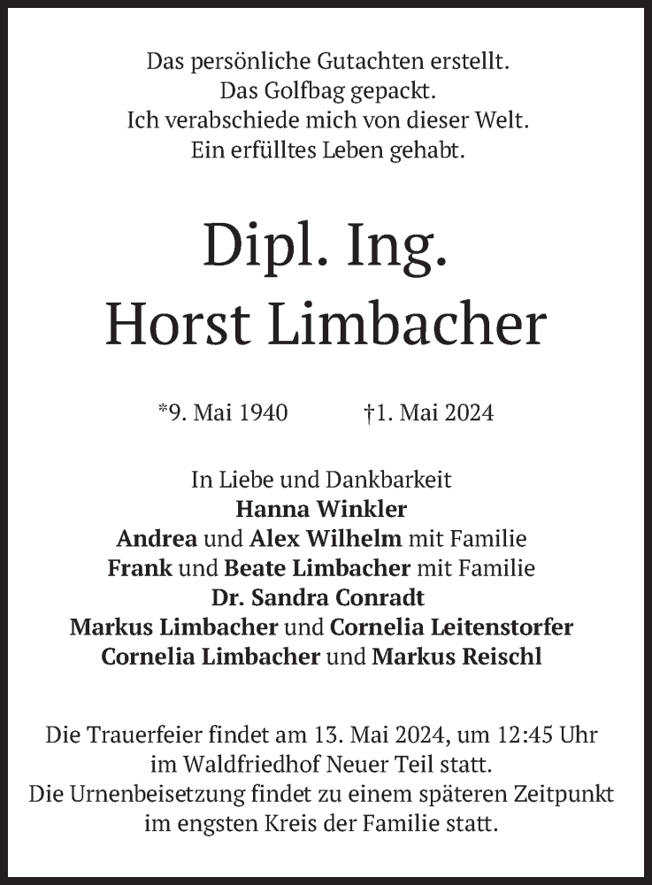 Hier finden Sie alle Traueranzeigen aus der Zeitung, die bisher für Horst Limbacher erschienen sind. Weitere Traueranzeigen, die in der Zeitung erscheinen, werden hier ebenfalls aufgelistet