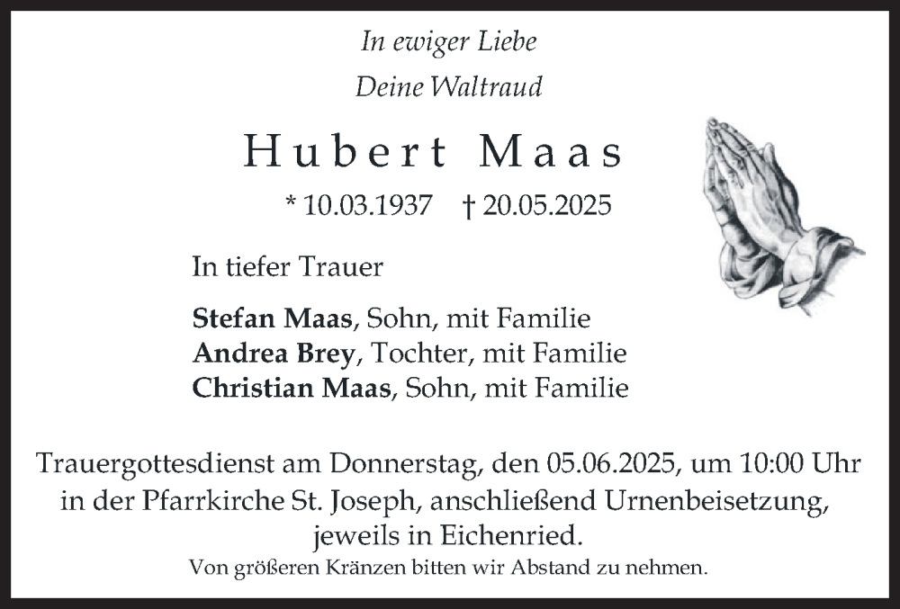 Hier finden Sie alle Traueranzeigen aus der Zeitung, die bisher für Hubert Maas erschienen sind. Weitere Traueranzeigen, die in der Zeitung erscheinen, werden hier ebenfalls aufgelistet