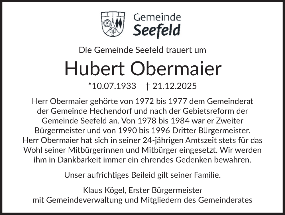 Hier finden Sie alle Traueranzeigen aus der Zeitung, die bisher für Hubert Obermaier erschienen sind. Weitere Traueranzeigen, die in der Zeitung erscheinen, werden hier ebenfalls aufgelistet
