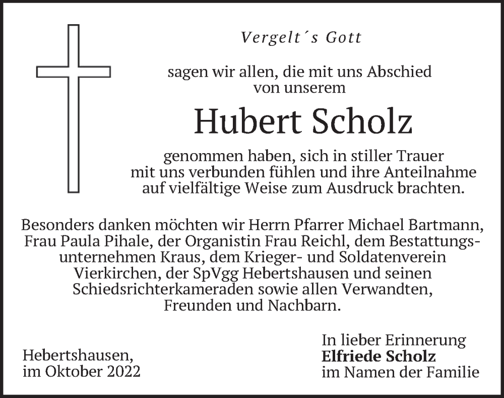 Hier finden Sie alle Traueranzeigen aus der Zeitung, die bisher für Hubert Scholz erschienen sind. Weitere Traueranzeigen, die in der Zeitung erscheinen, werden hier ebenfalls aufgelistet