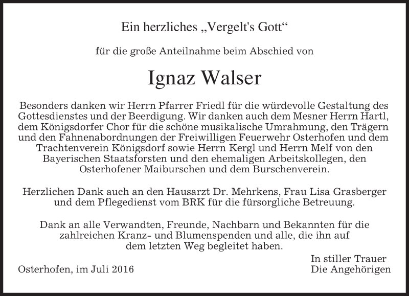 Hier finden Sie alle Traueranzeigen aus der Zeitung, die bisher für Ignaz Walser erschienen sind. Weitere Traueranzeigen, die in der Zeitung erscheinen, werden hier ebenfalls aufgelistet