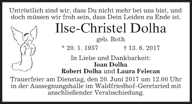 Hier finden Sie alle Traueranzeigen aus der Zeitung, die bisher für Ilse-Christel Dolha erschienen sind. Weitere Traueranzeigen, die in der Zeitung erscheinen, werden hier ebenfalls aufgelistet