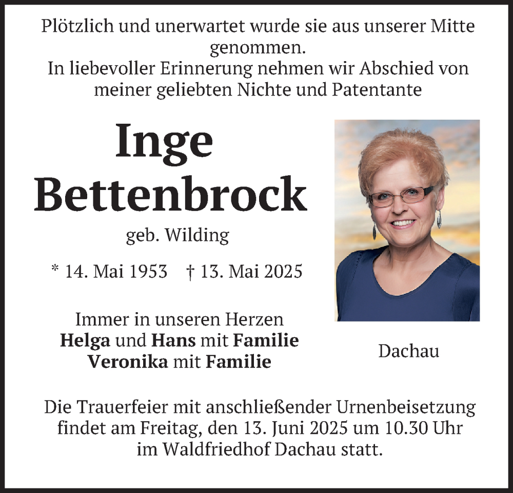 Hier finden Sie alle Traueranzeigen aus der Zeitung, die bisher für Inge Bettenbrock erschienen sind. Weitere Traueranzeigen, die in der Zeitung erscheinen, werden hier ebenfalls aufgelistet