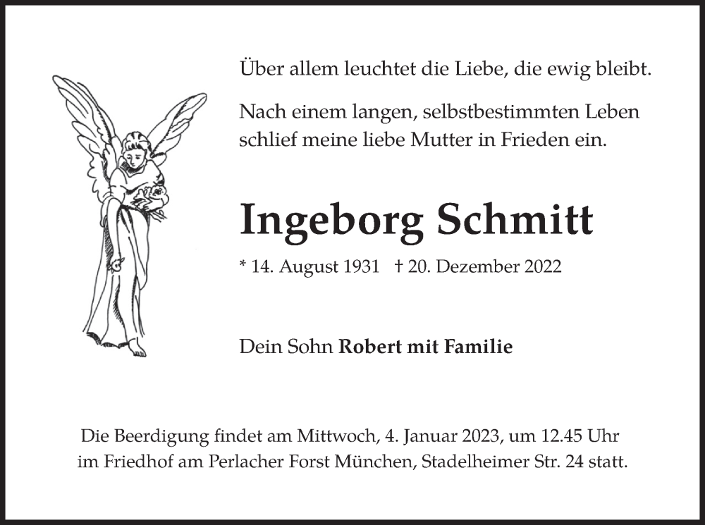 Hier finden Sie alle Traueranzeigen aus der Zeitung, die bisher für Ingeborg Schmitt erschienen sind. Weitere Traueranzeigen, die in der Zeitung erscheinen, werden hier ebenfalls aufgelistet