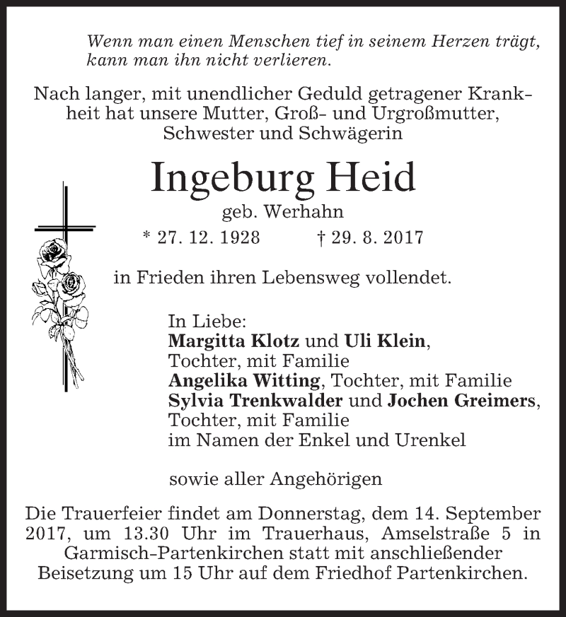 Hier finden Sie alle Traueranzeigen aus der Zeitung, die bisher für Ingeburg Heid erschienen sind. Weitere Traueranzeigen, die in der Zeitung erscheinen, werden hier ebenfalls aufgelistet